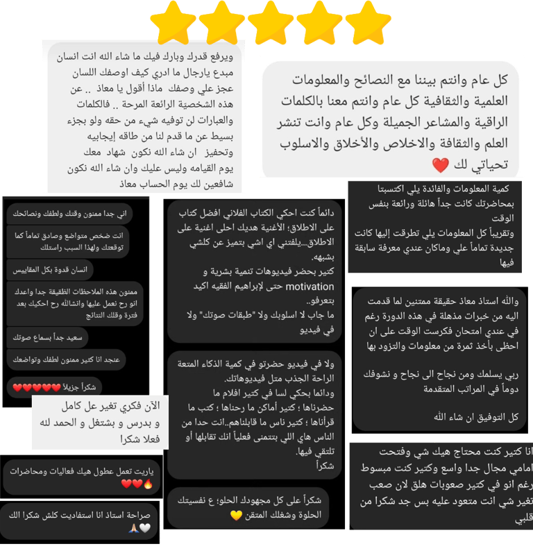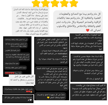 كلامكم هو الوقود الذي يجعلني أبذل المزيد من الجهد لأقدم الأفضل، لأن الإنسان عندما يرى نتائج عمله، يدرك القيمة التي يقدمها والمسؤولية التي يحملها! والفرصة في التأثير الإيجابي وتقديم الفائدة والإلهام للأشخاص المميزين!